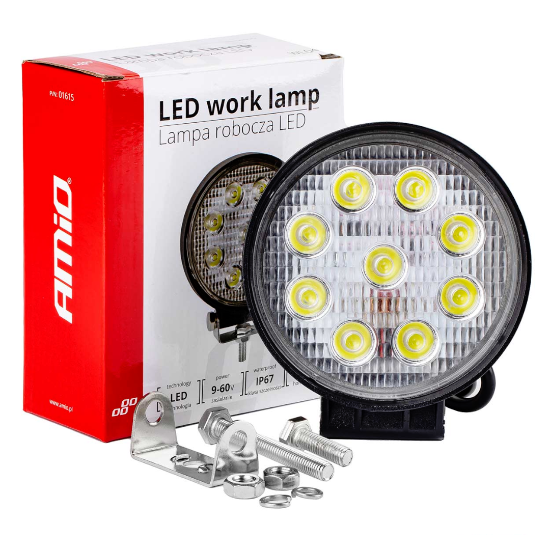 Lampa robocza z firmy Amio to wydajne źródło światła wyposażone w 9 diod LED o wysokiej jasności, które gwarantują znakomitą widoczność w każdych warunkach. Dzięki uniwersalnemu zasilaniu 12V i 24V, halogen LED sprawdzi się zarówno w samochodach osobowych, dostawczych, ciężarowych, jak i w maszynach rolniczych oraz budowlanych.