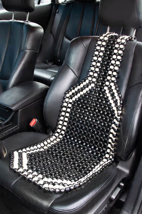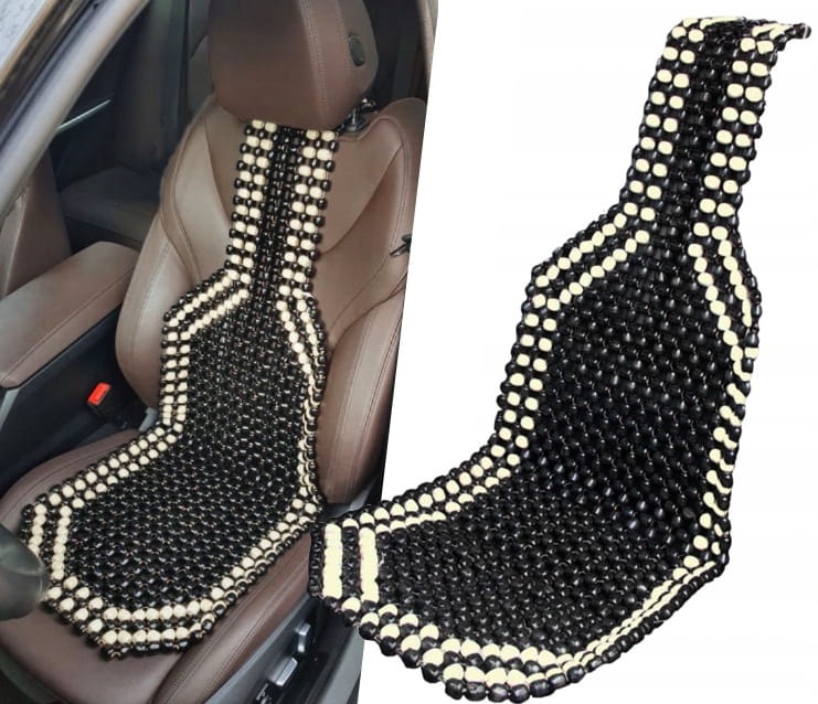 Mata koralikowa to klasyczne i sprawdzone rozwiązanie dla osób, które spędzają dużo czasu za kierownicą. Wykonana z drewnianych koralików, zapewnia cyrkulację powietrza, ograniczając pocenie się pleców i ud podczas długiej jazdy. Dodatkowo delikatnie masuje ciało, co wpływa na lepsze samopoczucie i komfort podróżowania. Wspomaga układ krążenia, a co za tym idzie zmniejsza poczucie zmęczenia. Koraliki w dwóch kolorach, jasnym i ciemnym. Całość przepleciono żyłką nadając kształt i formę maty na siedzisko. Pokrowiec jest łatwy w utrzymaniu czystości.