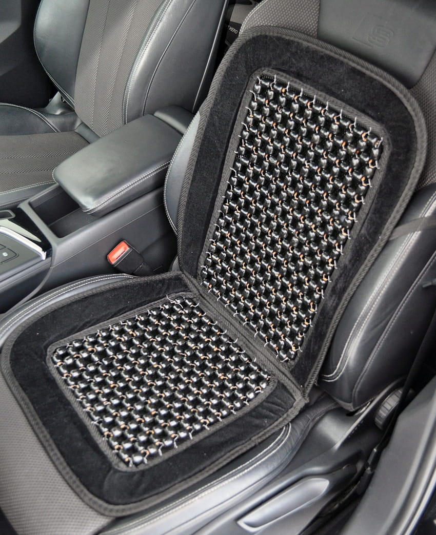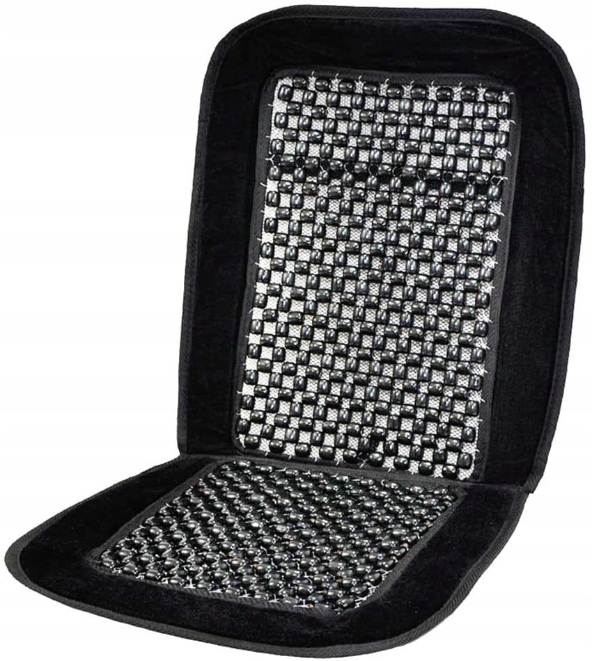 - Mata profilowana na fotel samochodowy wykonana z drewnianych koralików z drewna bambusowego spleciona mocną żyłką.