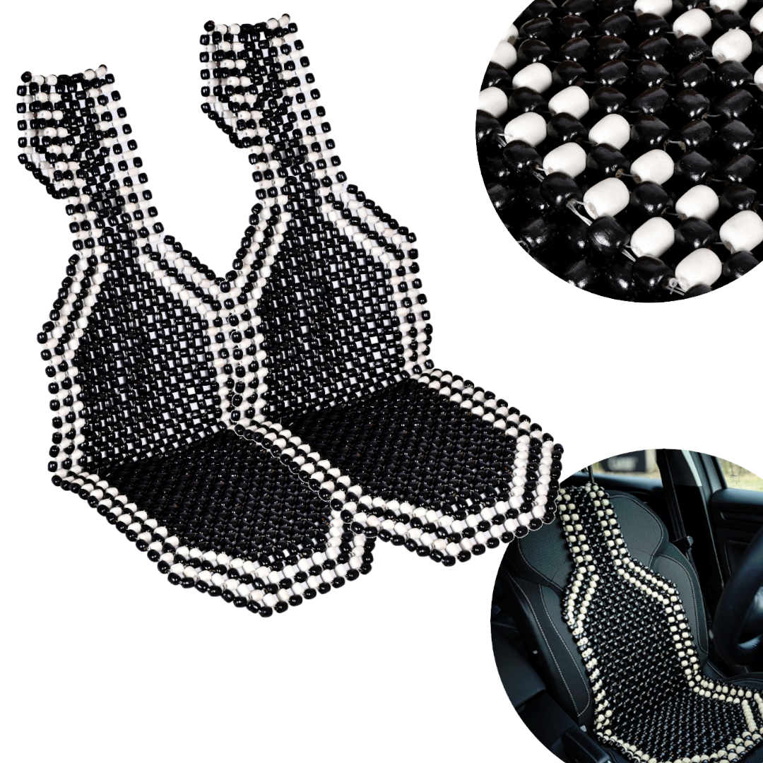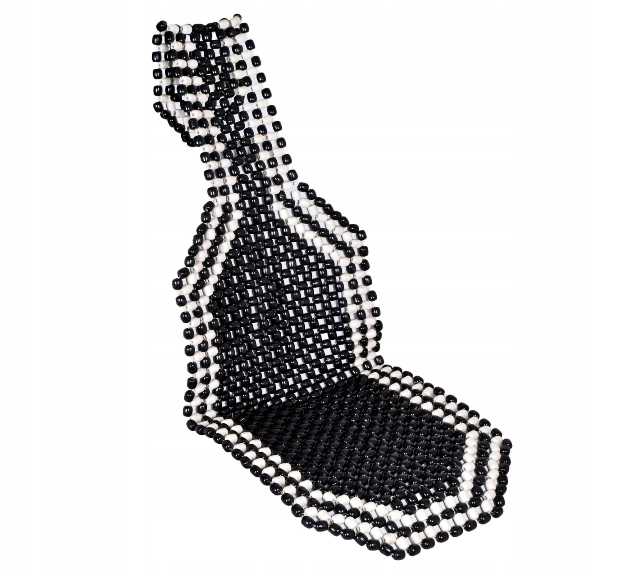 Mata koralikowa na fotel 2 szt. czarno-biała, na siedzenia koraliki zwykłe