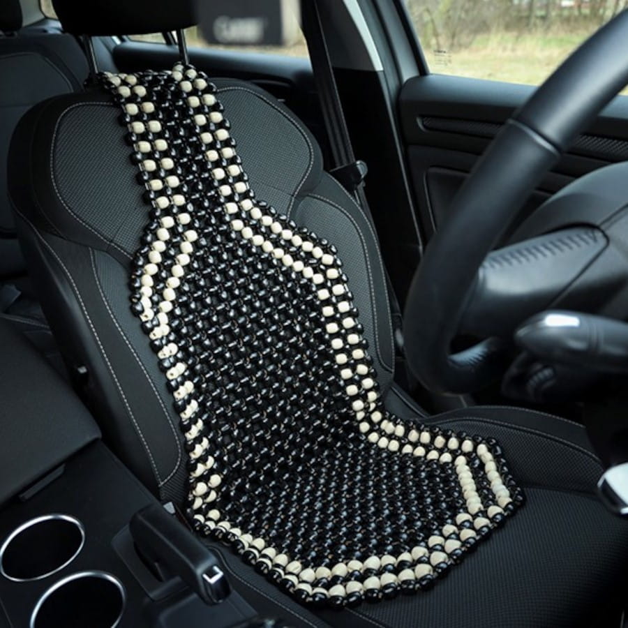 Mata koralikowa to klasyczne i sprawdzone rozwiązanie dla osób, które spędzają dużo czasu za kierownicą. Wykonana z drewnianych koralików, zapewnia cyrkulację powietrza, ograniczając pocenie się pleców i ud podczas długiej jazdy. Dodatkowo delikatnie masuje ciało, co wpływa na lepsze samopoczucie i komfort podróżowania. Wspomaga układ krążenia, a co za tym idzie zmniejsza poczucie zmęczenia. Koraliki w dwóch kolorach, jasnym i ciemnym. Całość przepleciono żyłką nadając kształt i formę maty na siedzisko. Pokrowiec jest łatwy w utrzymaniu czystości.
