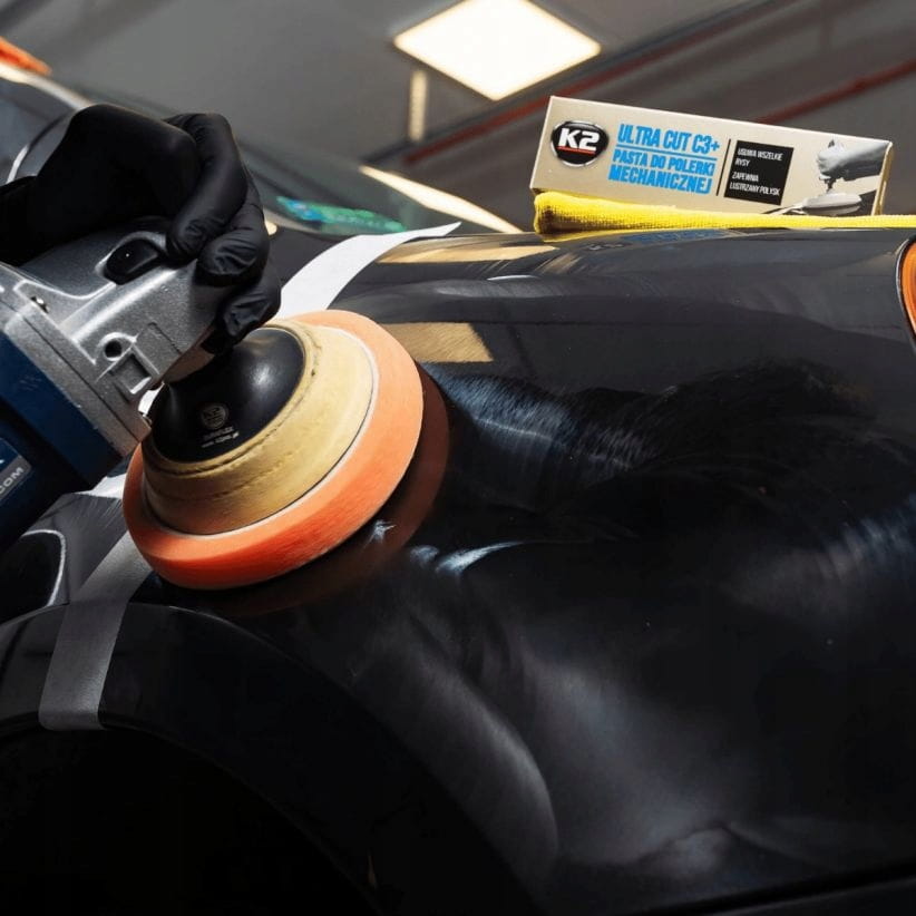 K2 ULTRA CUT C3+ to mocno ścierna pasta polerska do maszyn ( tzw. fast-cut compound ), przeznaczona do korekty lakieru samochodowego i innych powierzchni lakierowanych. Usuwa nawet bardzo duże zarysowania np. powstałe po papierze ściernym o gradacji P800. Eliminuje wszelkie defekty, skórkę pomarańczową, zacieki, oksydację, rysy i hologramy, przebarwienia. Pozwala zaoszczędzić czas, ponieważ w odróżnieniu od wielu produktów charakteryzuje się wysoką szybkością działania. Nadaje się do polerowania lakierów samochodowych wszelkiego rodzaju, lakierów przemysłowych, łodzi, mebli, żelkotów, reflektorów, celulozy, powierzchni syntetycznych, akryli i wielu innych.