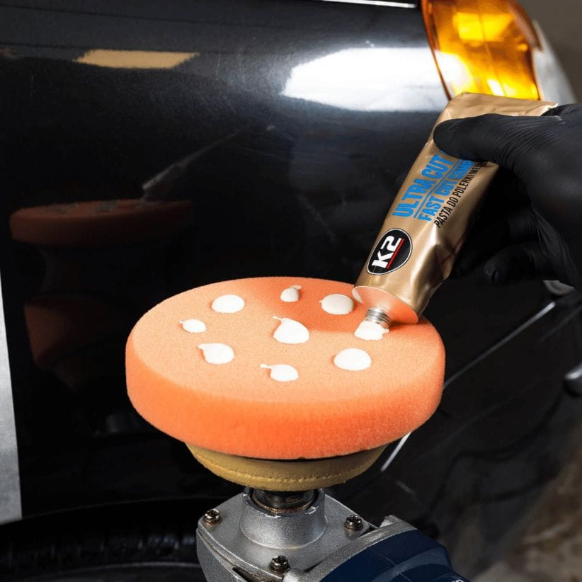 Pasta K2 ULTRA CUT C3+ nadaje się do użycia z różnej twardości gąbkami polerskimi. Do usuwania niewielkich zarysowań zaleca się używanie gąbki lekkościernej. Usuwając bardzo poważne defekty należy stosować gąbkę mocnościerną lub gąbkę średniościerną. Chcąc uzyskać perfekcyjny efekt wykończeniowy na bardzo zniszczonych powierzchniach, zaleca się użycie pasty w dwóch krokach: początkowo z gąbką twardą - usuwanie rys, następnie z gąbką miękką lekkościerną - nabłyszczanie.