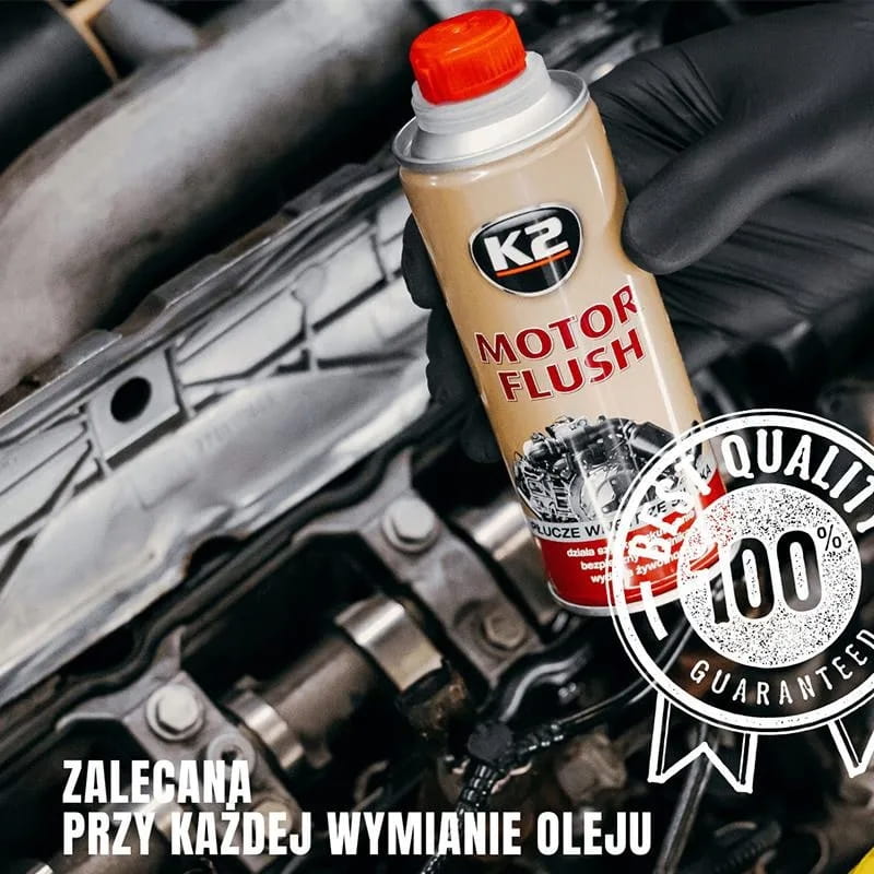 K2 Motor Flush może być stosowany we wszystkich silnikach spalinowych – diesla, benzynowych oraz zasilanych gazem. Specjalne dodatki smarujące zawarte w płukance, zabezpieczają silnik przed nadmiernym tarciem mogącym powstać na skutek rozrzedzenia oleju po dolaniu środka płuczącego. K2 Motor Flush jest całkowicie bezpieczny dla silnika.