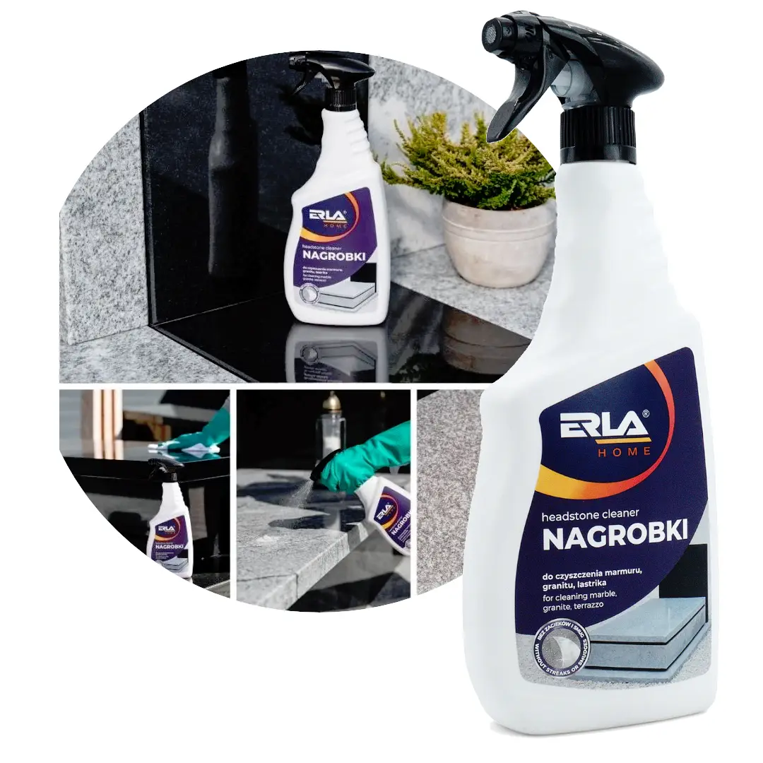 Płyn do czyszczenia nagrobka ERLA NAGROBKI 750ml do granitu marmuru lastrika betonu silny i skuteczny