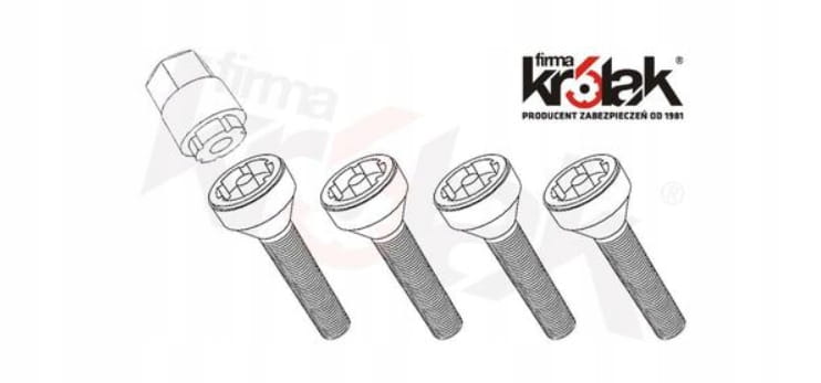 Śruby zabezpieczające do kół M12X1,50X34 stożek klucz 17 KRÓLAK