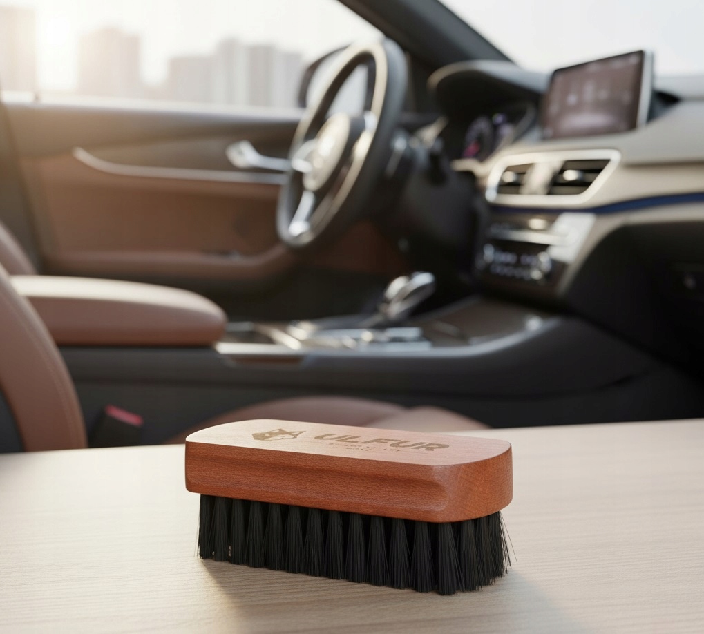 ULFUR to wysokiej jakości szczotka do czyszczenia i pielęgnacji tapicerki skórzanej, naturalnej i sztucznej skóry, stworzona do bezpiecznego usuwania kurzu, zabrudzeń i odświeżania powierzchni skórzanych. Dzięki swojej konstrukcji pozwala dokładnie usuwać zabrudzenia z porowatej struktury skóry, jednocześnie nie powodując jej uszkodzeń ani przetarć. Idealna zarówno dla miłośników perfekcyjnie zadbanego wnętrza samochodu, jak i do pielęgnacji mebli, galanterii czy innych skórzanych akcesoriów.