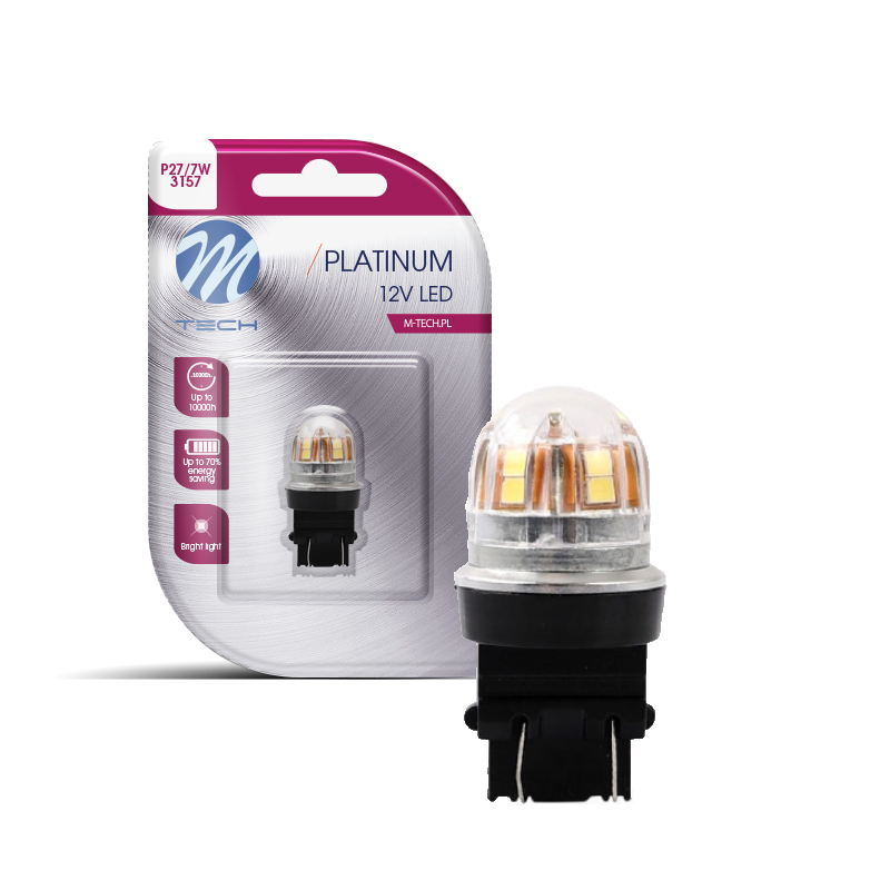 Żarówka LED P27/7W 3157 to nowoczesny zamiennik tradycyjnych żarówek halogenowych stosowanych w oświetleniu samochodowym. Dzięki technologii LED zapewnia jasne, wyraźne światło o barwie białej, które poprawia widoczność oraz nadaje pojazdowi nowoczesny wygląd.