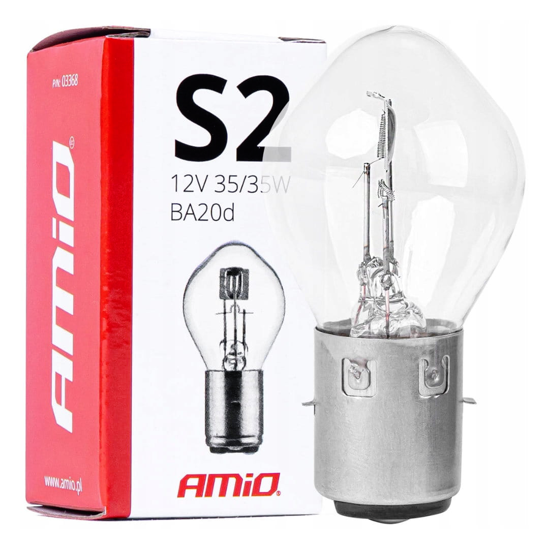 Postaw na jakość i bezpieczeństwo - wybierz żarówkę halogenową S2 12V 35/35W BA20D marki AMiO i ciesz się pewnym oświetleniem każdej trasy.