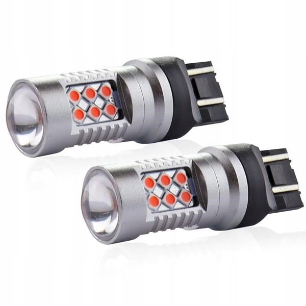 Żarówki LED WR21/5W W21/5W T20 AMiO 12V 24V Retrofity z Soczewką Diody Czerwone – Stop / Pozycja