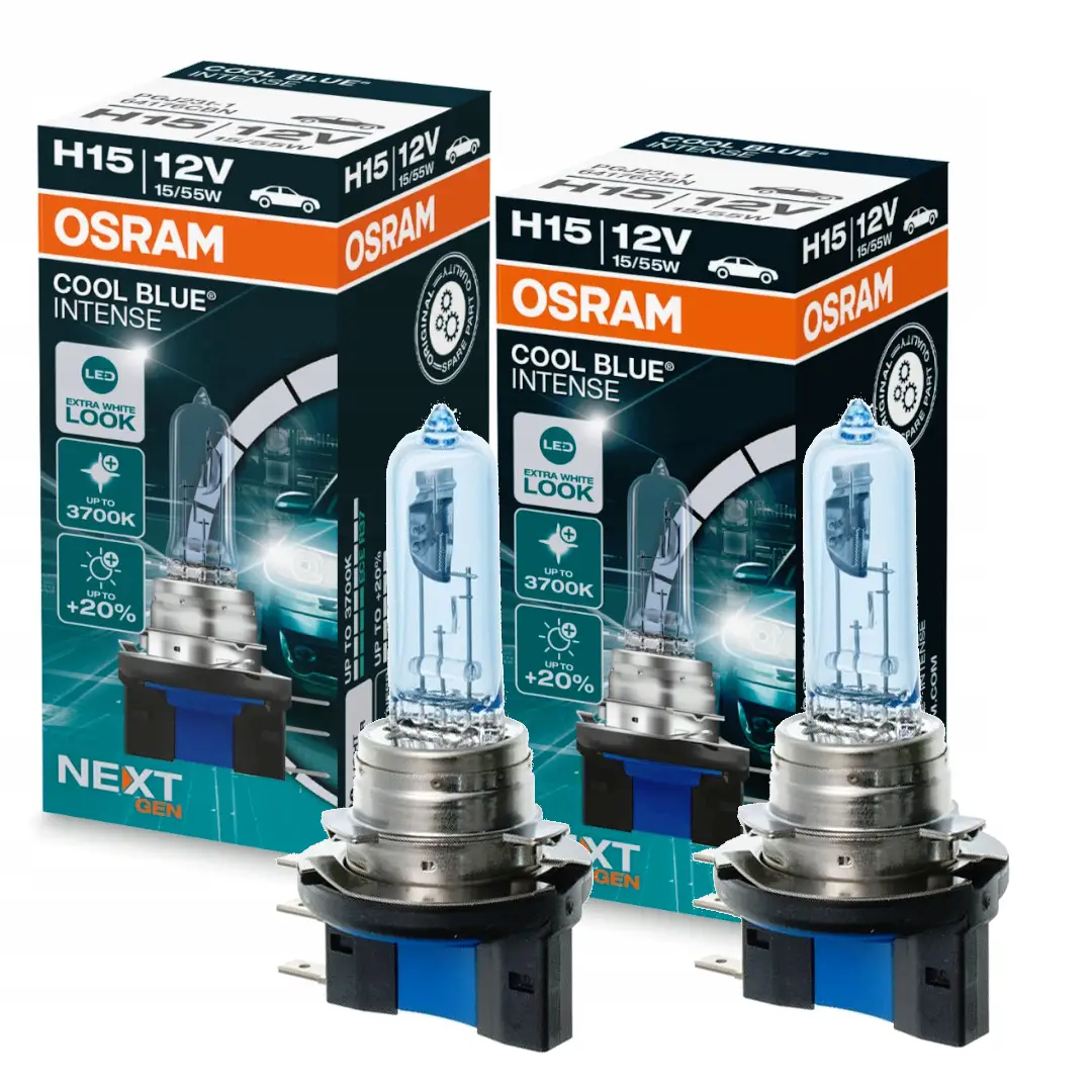 Żarówka OSRAM H15 Cool Blue Intense Next Gen to idealne połączenie nowoczesnego designu i wydajności świetlnej. Zapewnia jasne, białe światło o temperaturze barwowej do 3700K, które przypomina światło LED - dzięki czemu droga przed Tobą jest lepiej oświetlona, a Twój samochód zyskuje stylowy wygląd.