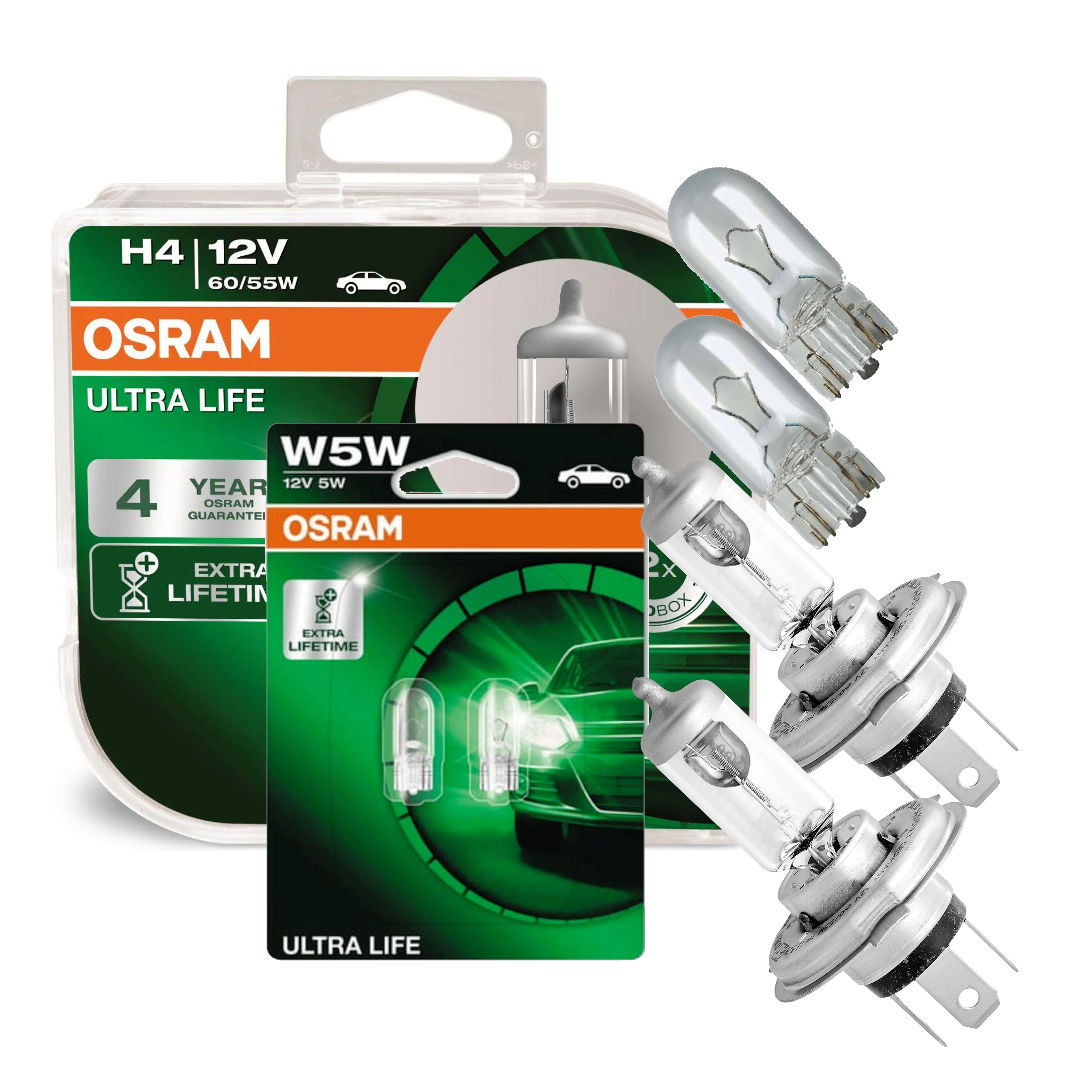 OSRAM Ultra Life H4 + OSRAM Ultra Life W5W to zestaw stworzony dla tych, którzy oczekują trwałości, bezpieczeństwa i najwyższej jakości oświetlenia. Wybierz sprawdzone żarówki - wybierz OSRAM Ultra Life.