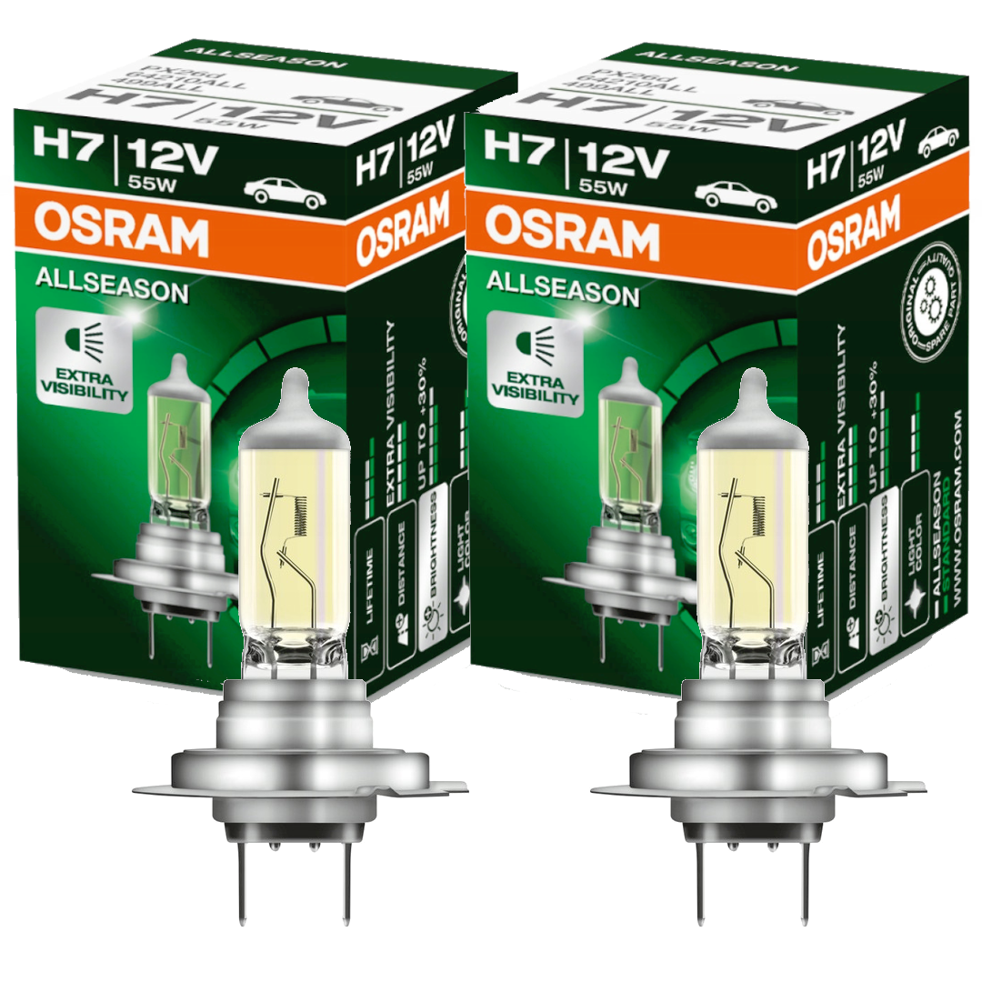 Żarówki halogenowe H7 OSRAM 12V 55W ALLSEASON Całoroczne 2 sztuki +30% Więcej Światła Mijania Drogowe