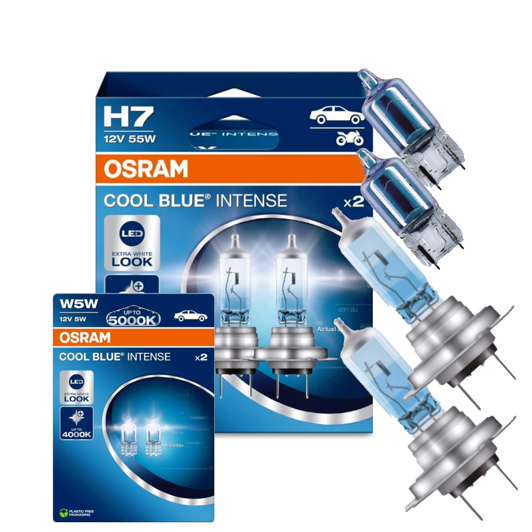 Idealny komplet do reflektorów przednich - żarówki główne H7 55W 12V 5000K oraz postojówki W5W 5W T10 12V 4000K z tej samej linii Cool Blue Intense, gwarantują spójny efekt wizualny i doskonałą widoczność.