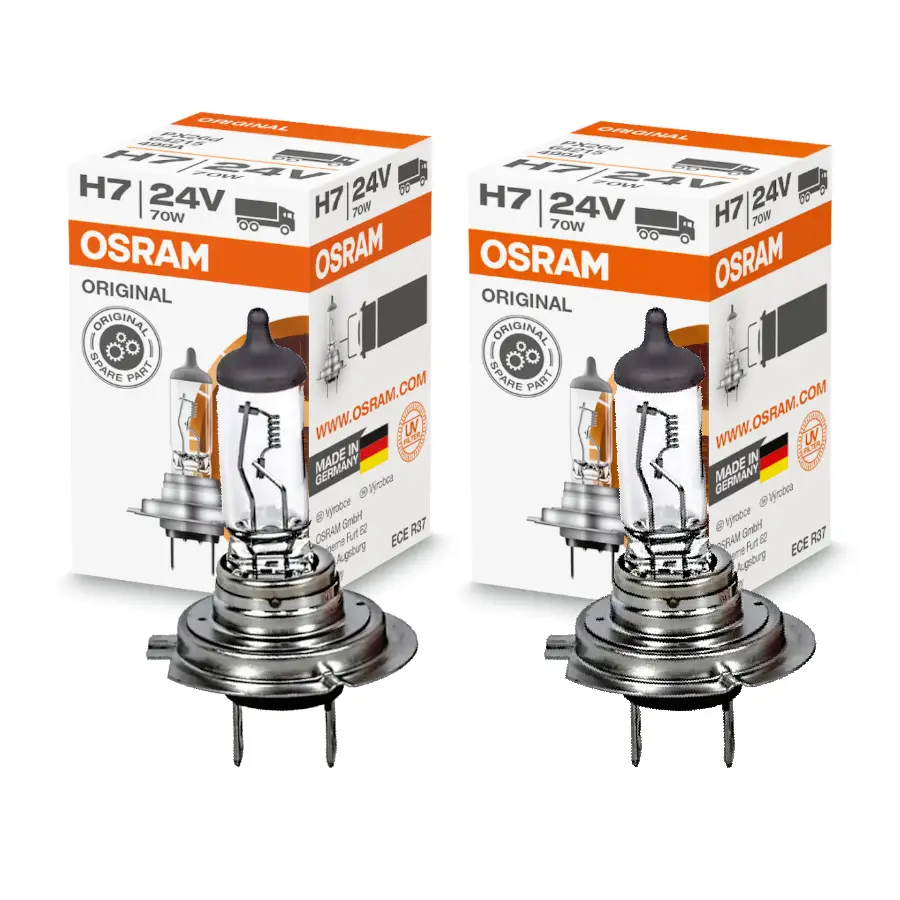 Żarówki H7 OSRAM 24V Original to idealne rozwiązanie dla głównego oświetlenia pojazdu, przeznaczone głównie dla kierowców zawodowych i flot transportowych, redukują koszty eksploatacji oraz poprawiają bezpieczeństwo na drodze.