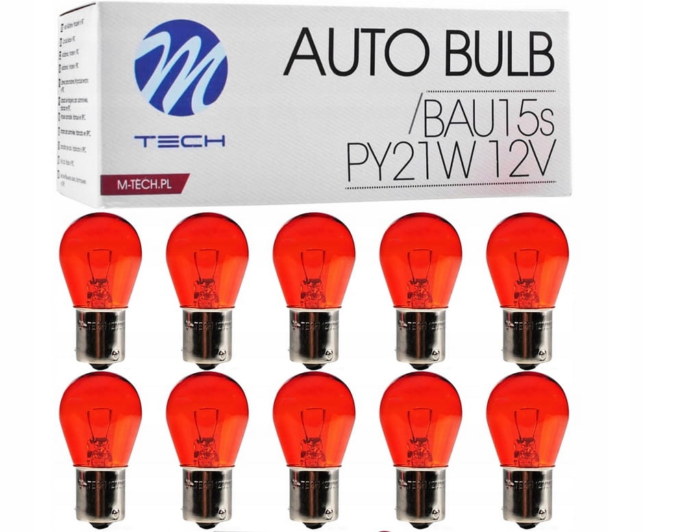 Żarówki halogenowe M-Tech PY21W BAU15s 12V 21W pomarańczowe asymetryczne 10 szt.