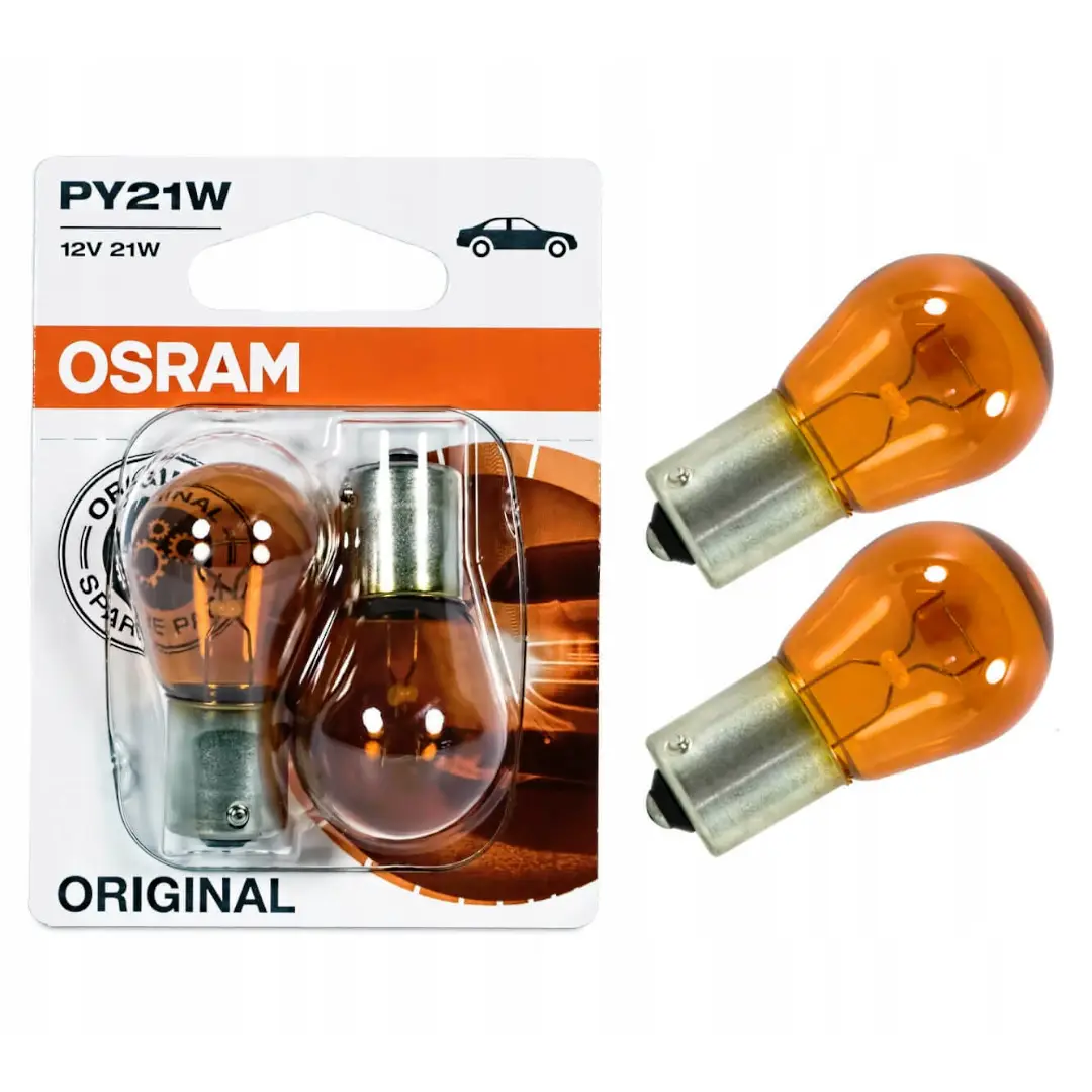 Żarówki halogenowe PY21W BAU15s 12V 21W OSRAM ORIGINAL pomarańczowe asymetryczne