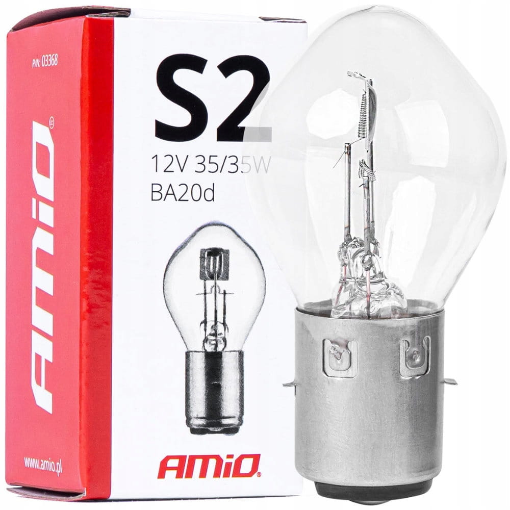 Żarówki halogenowe S2 AMiO 12V 35/35W BA20d 2 sztuki SKUTER MOTOR MOTOCYKL