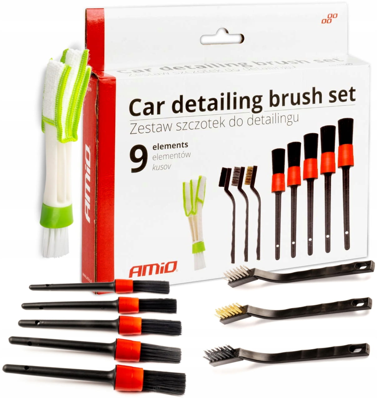 Zestaw do detailingu, profesjonalne pędzelki do czyszczenia, szczoteczki i czyścik 9 el.