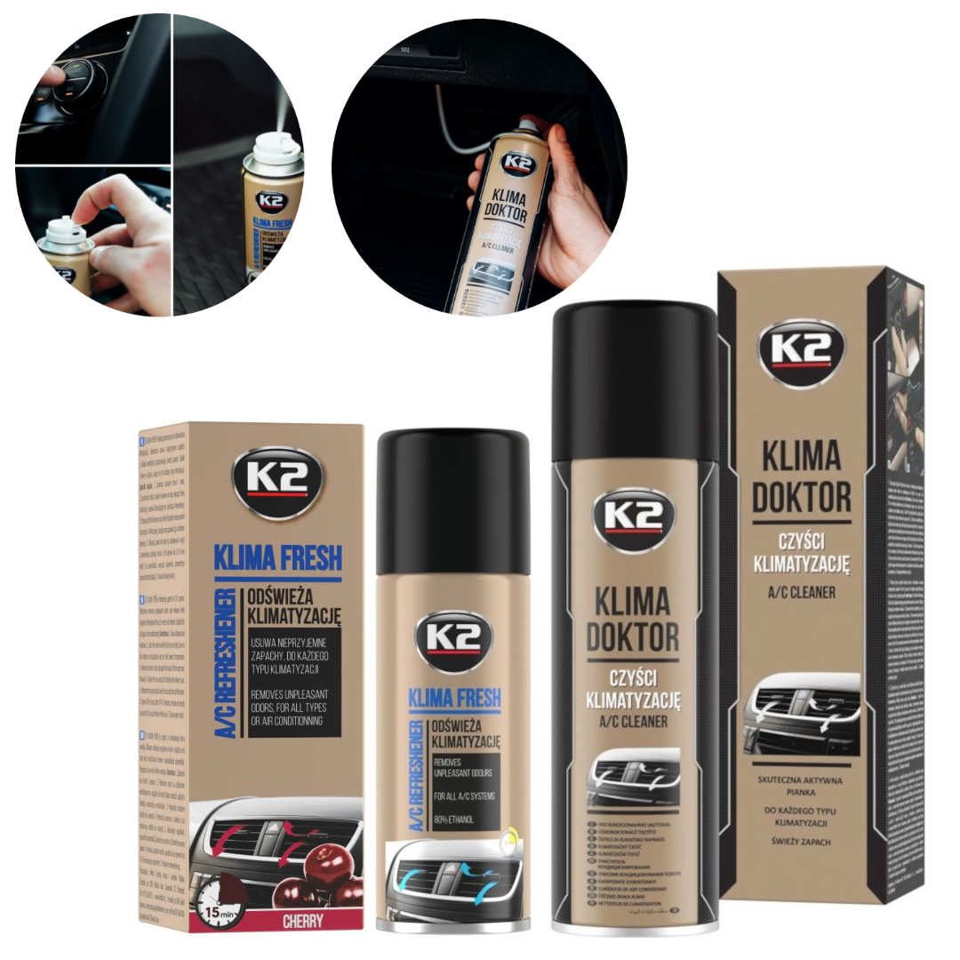 Zestaw do odgrzybiania i odświeżania klimatyzacji K2 - KLIMA DOKTOR i KLIMA FRESH CHERRY