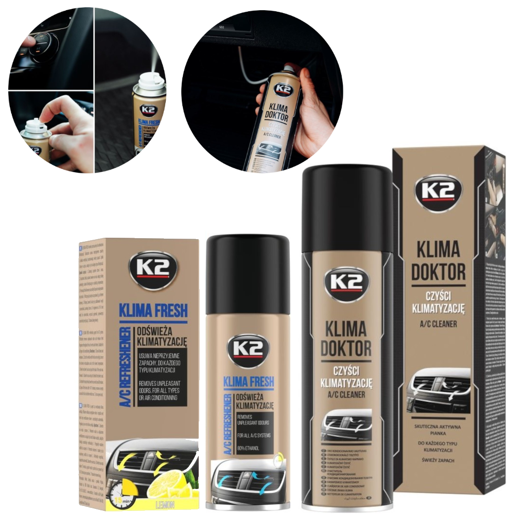 Zestaw do odgrzybiania i odświeżania klimatyzacji K2 - KLIMA DOKTOR i KLIMA FRESH LEMON