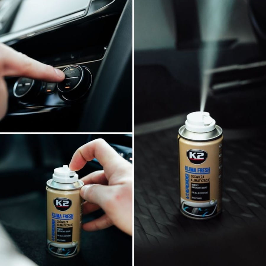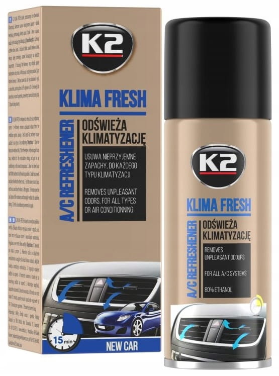 Niezwykle skuteczny i łatwy w użyciu środek do odświeżania klimatyzacji w samochodzie. Usuwa nieprzyjemne zapachy, które powstają na skutek zanieczyszczeń i wilgoci w układzie wentylacyjnym. Cały proces nie zabiera więcej niż kilkanaście minut. K2 KLIMA FRESH o zapachu nowości i świeżości nadaje się do każdego typu klimatyzacji. Po jego użyciu pozostawia przyjemny zapach.