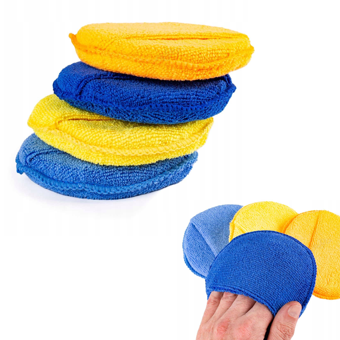 Zestaw profesjonalnych aplikatorów z mikrofibry do pielęgnacji samochodów.